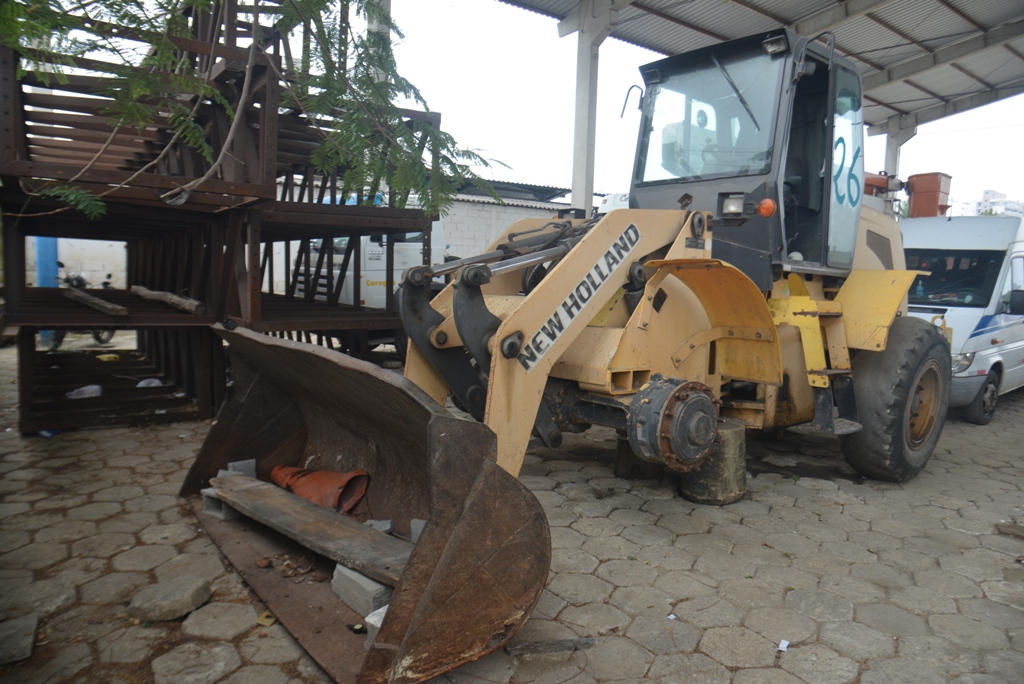 #PraTodosVerem: Trator pá-carregadeira que vai a leilão no dia 17 de outubro, exposto Secretaria de Serviços Públicos (Foto: JC Curtis/PMC)